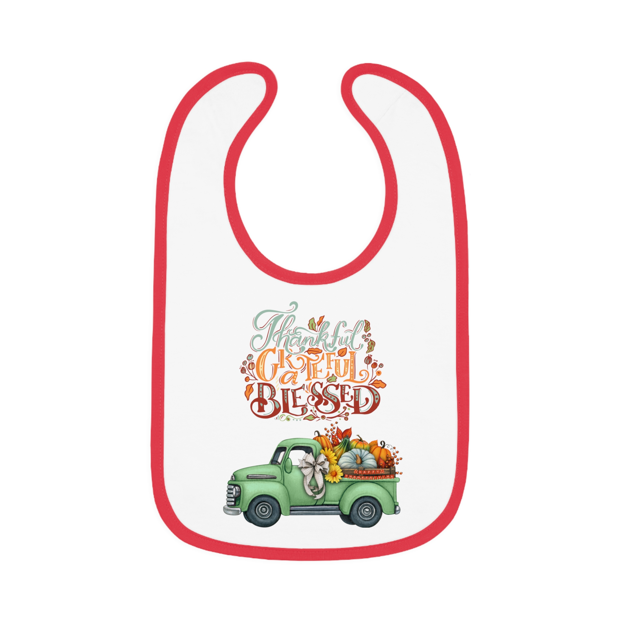Introducing a delightful Baby Bib that combines practicality with adorable design. This bib is crafted from 100% combed and ringspun cotton, providing a soft and smooth feel for your little one. The vibrant contrast trim adds a playful touch and is sure to brighten mealtime. Perfect for hungry toddlers, it features a durable Velcro closure that ensures a snug fit, making it easy to put on and take off. This cheerful bib showcases a charming graphic that embodies gratitude and warmth, making it an ideal gift for new parents or a sweet addition to your child’s outfit. It’s great for everyday use or special occasions like birthdays and family gatherings. Celebrate those precious moments and keep your baby clean and stylish with this adorable bib!