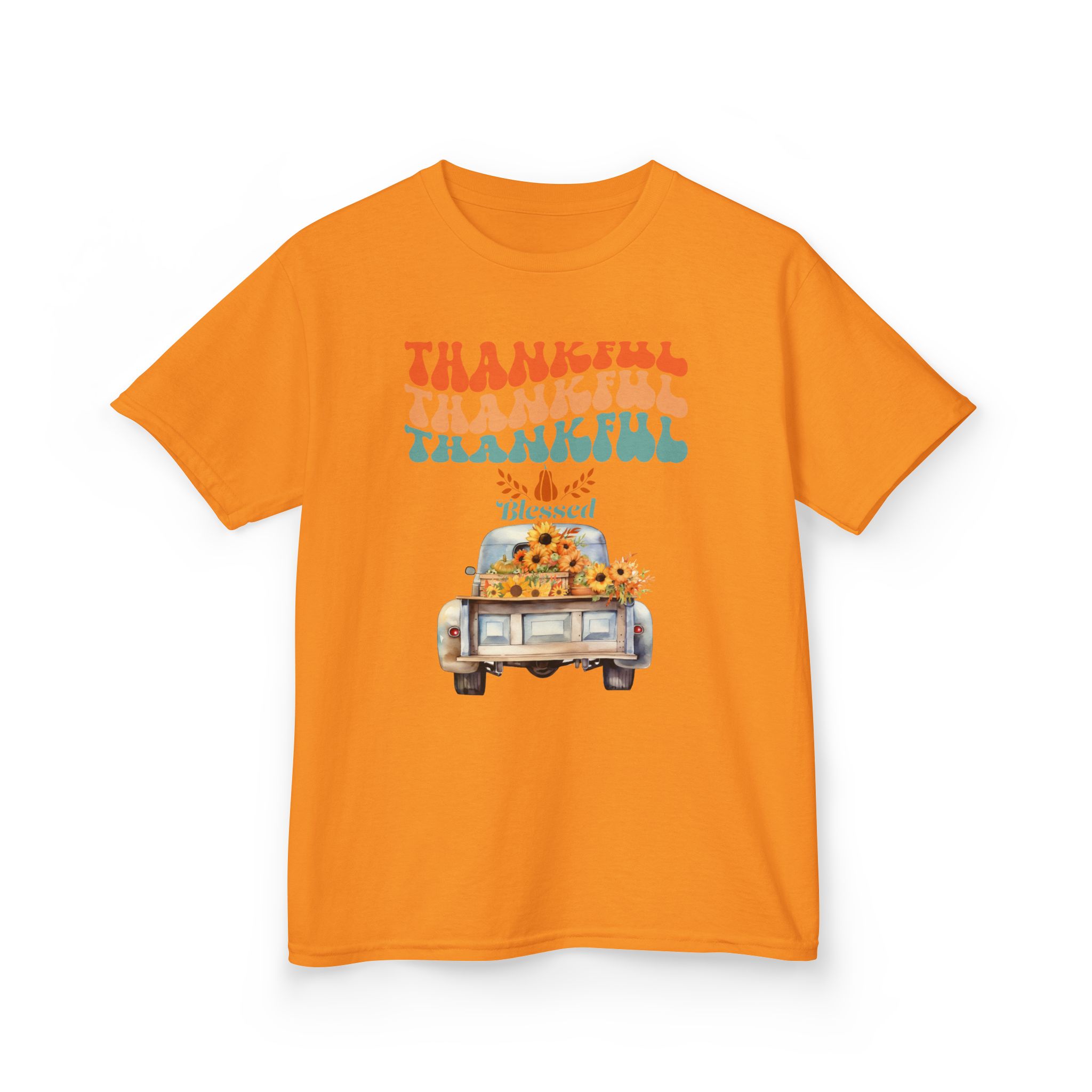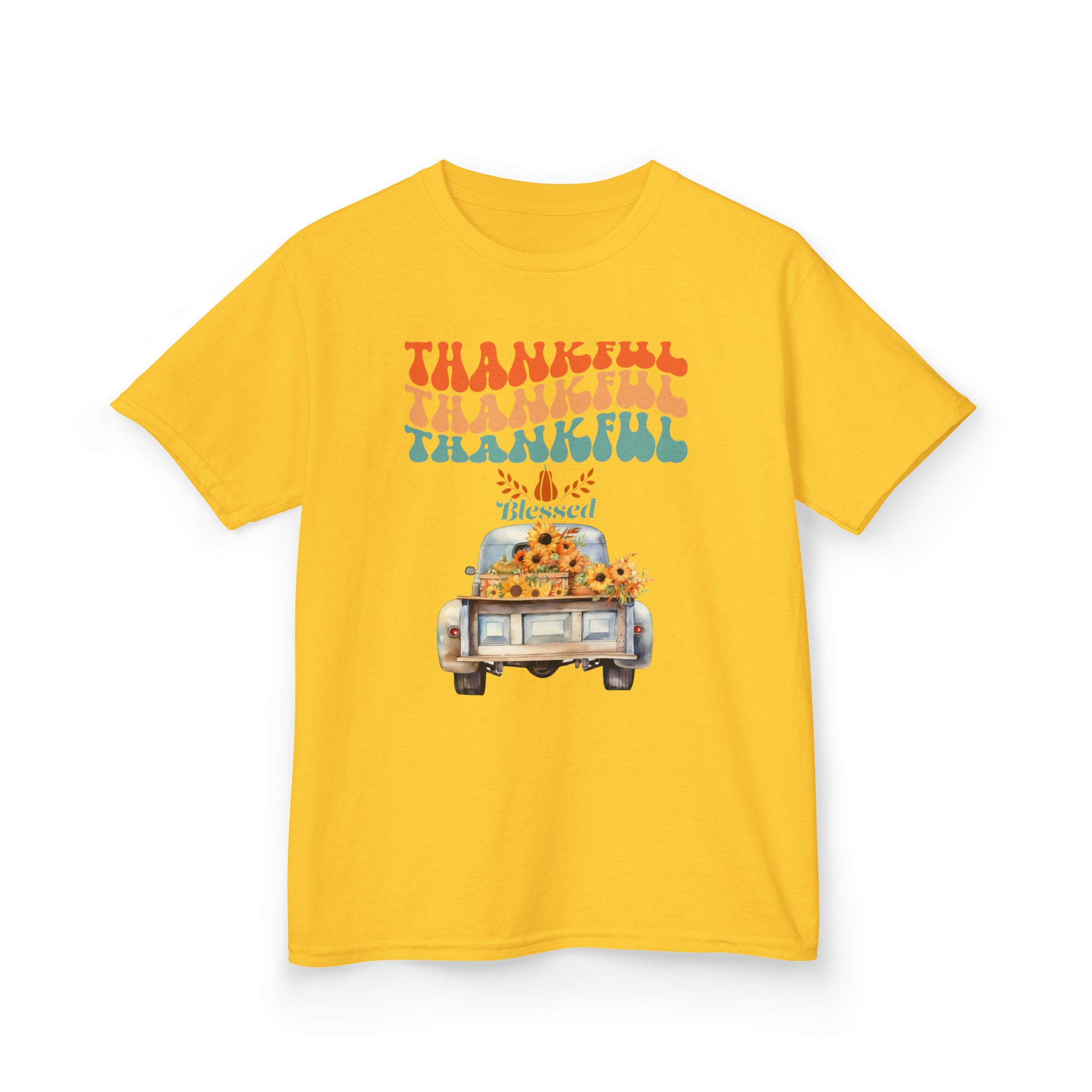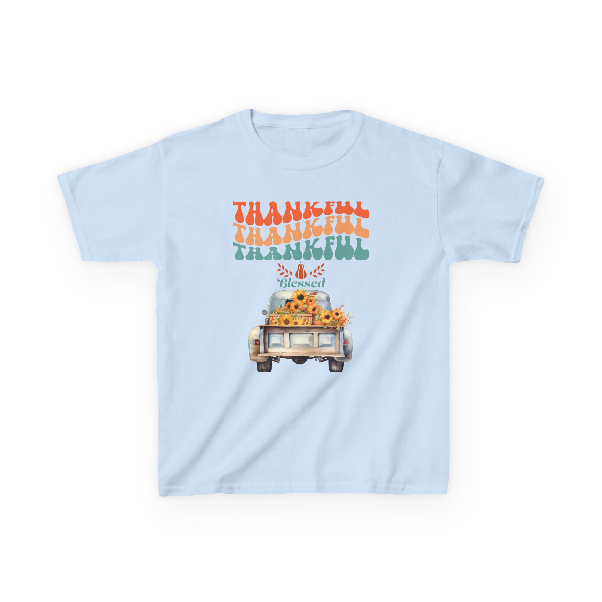 Introducing our Kids Heavy Cotton™ Tee, a perfect blend of comfort and style for your little ones! This tee showcases a vibrant and playful design featuring the word ‘Thankful’, making it an ideal addition to your child’s wardrobe, especially during Thanksgiving celebrations. It’s perfect for family gatherings or everyday adventures, radiating a cheerful and warm vibe that kids love. Crafted from high-quality, US-grown cotton, this soft, breathable tee ensures all-day comfort, making it suitable for active play and cozy days at home. Great for children ages 5-12, this tee fits seamlessly into any casual outfit or can be paired with festive accessories for a holiday look. Celebrate gratitude and warmth with this stylish tee, perfect for kids who embrace joy and positivity!